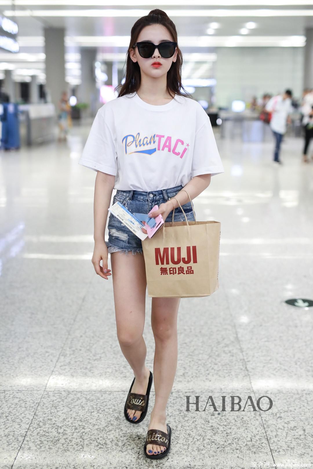 镜头下的杨超越,状态松弛而自然。她的“漫画脸”上保持着特有的无辜与呆萌表情,与性感的热裤造型形成了一种微妙的反差。仔细观察,这条牛仔热裤并非毫无设计,裤脚处自带荷叶边拼接,为整体造型增添了几分甜美的细节。杨超越非常懂得如何最大化自身的优势,她为这套造型搭配了一双透明感十足的凉鞋。这“悄无声息”的搭配小心机,在视觉上有效拉伸了腿部线条,使她本就傲人的双腿比例显得更加完美,整个人看起来愈发高挑挺拔。这双被网友戏称为“人间美腿天花板”的腿,线条笔直流畅,其展现的美感并非单纯源于纤细,更在于通过长期自律的拉伸和姿势管理所塑造出的匀称与力量感。据过往采访透露,杨超越从练舞时期就非常注重腿部护理,坚持睡前拉伸,甚至对站姿、走路的细节都十分较真,这才成就了镜头前几乎无死角的完美腿型。